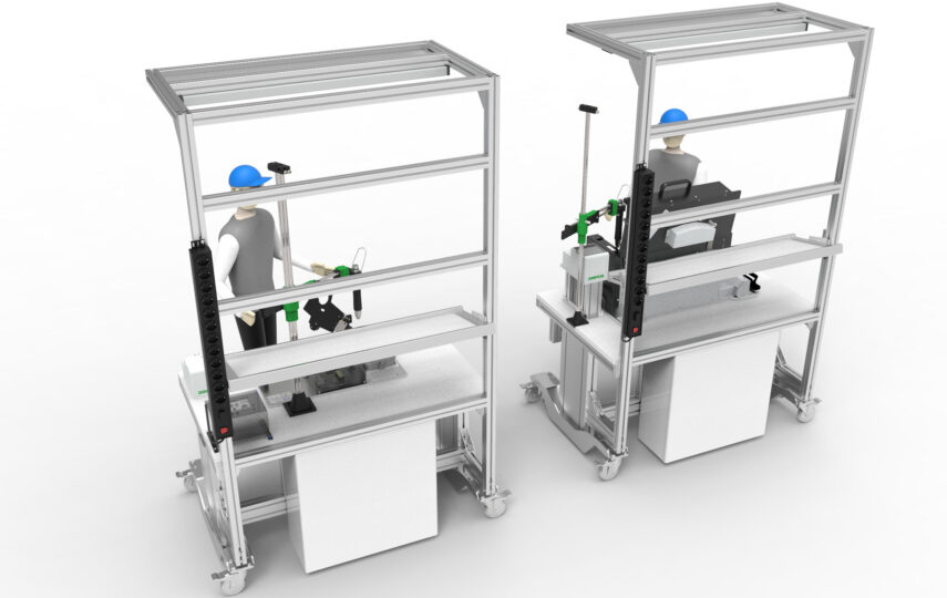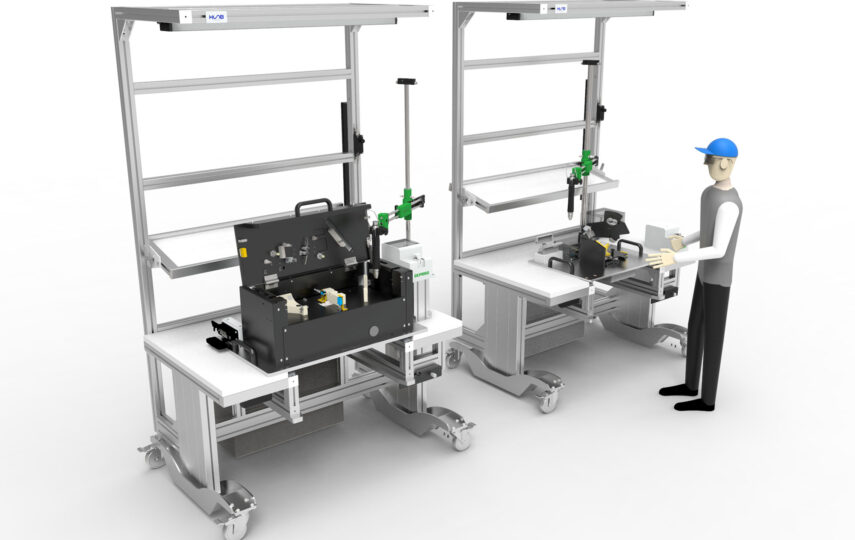 - Kundenspezifische Werkbänke & Wagen – spezielle Arbeitsplatzlösungen für stationäre und flexible Aufbauten.